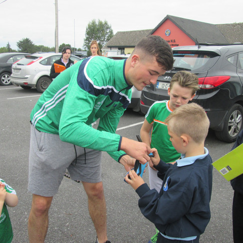 The creche and school students had an opportunity to meet All-Ireland Hurling Champion, Kyle Hayes. He kindly agreed to sign jerseys, pencil cases, homework journals and even, rulers for the Banogue NS students. It was a great honour to meet a hurling hero and he spoke to the children about the importance of working hard at school and the importance of playing sport.
